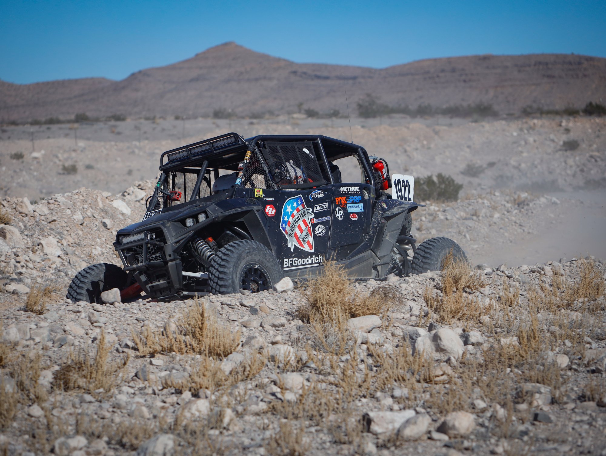 Warfighter made, BFG, PRP, FOX, Offroad HQ, Vision Wheels, PCI Radio, Deweys, barleys sports bar, No Limit RD