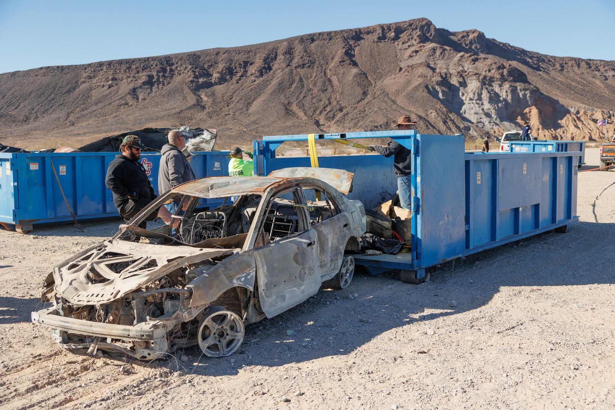 Building off the success of the Mint 400 Desert Cleanup, UNLTD brings similar initiatives to each of its race events, with Parker joining the roster last year. Starting in the Upper Shea Road spectator area, dozens of volunteers worked all morning to retrieve illegally dumped waste, with items as large as an abandoned car and boat among those pulled from the desert.